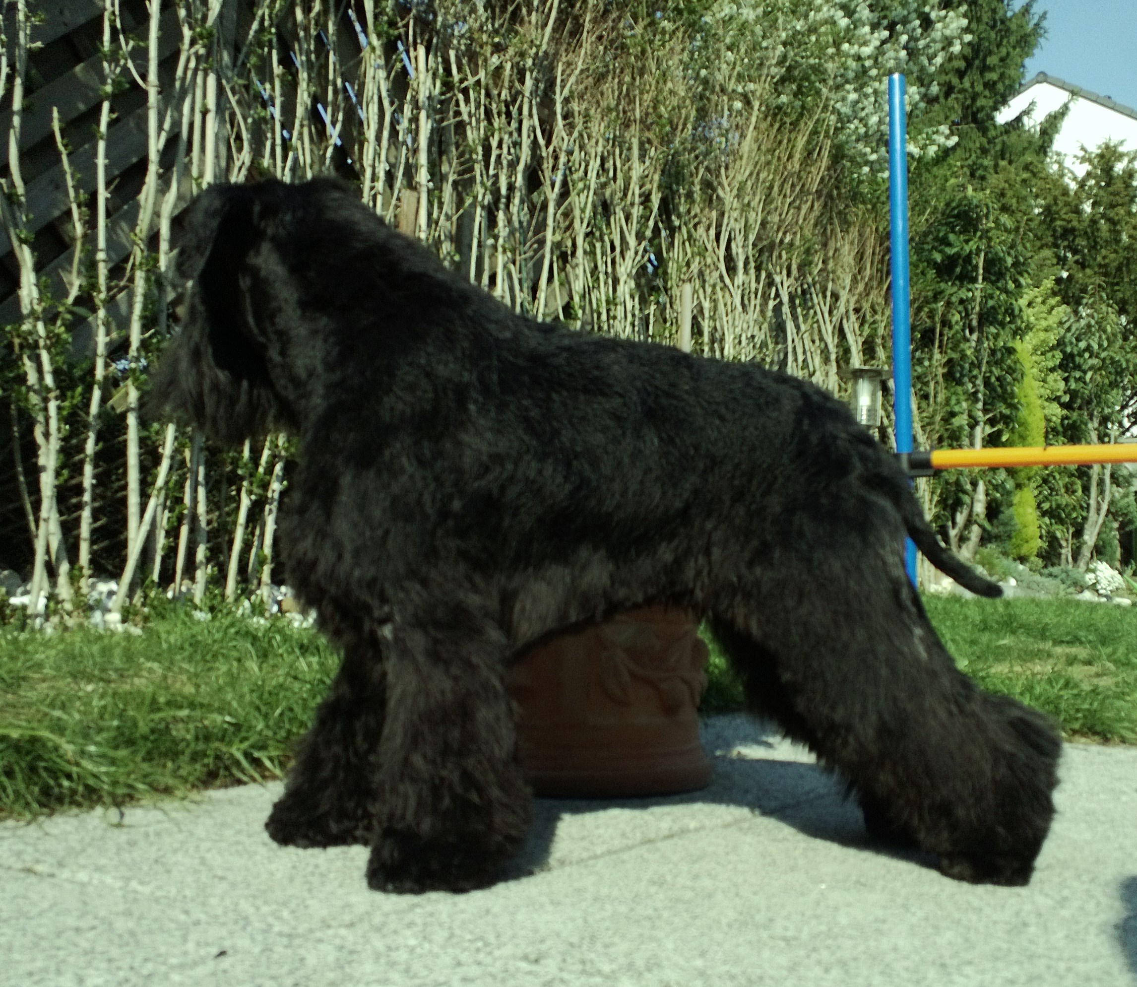 Ein Sohn von Curtis, charakterlich ganz der 'Alte' ;-), trabt neben dem Rad wie ein Weltmeister, zu allen freundlich, kein Kläffer, anhänglich, treu und selbstbewußt. Angst kennt er keine. Ernährt sich am liebsten natürlich, gesund und bevorzugt Äpfel, Bananen, rohe Paprika (wie fast alle Gemüsesorten). Fleisch natürlich auch .. in jeder Form. Derweilen sündigt er auch ganz gerne mal mit Milchkaffee. Flöns weiß was er will und was er tut. Showtage hat er mal mit vorzüglich, mal mit sehr gut beendet. Halt nach Trimmer- oder Richterlaune ;-)